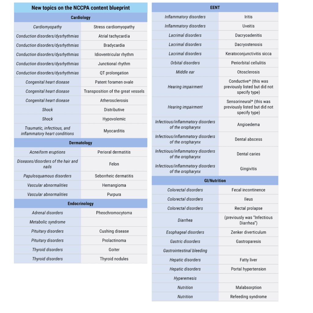 If you didn’t already know changes have been made to the PANCE blueprint, there’s no need to panic! You still have plenty of time. Beginning in January 2025, a new NCCPA content blueprint for the PANCE exam will go into effect. Here’s an overview of the changes, why these changes were made, and how to incorporate the new PANCE blueprint into your study plan.